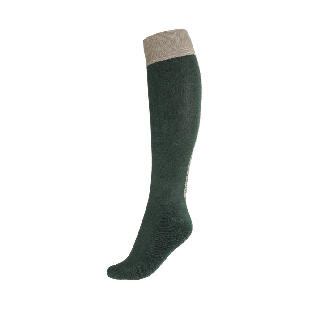 Thin knee socks with elegant logo lettering along the back calf. Made of super comfortable and moisture-wicking bamboo fabric with a terry foot.