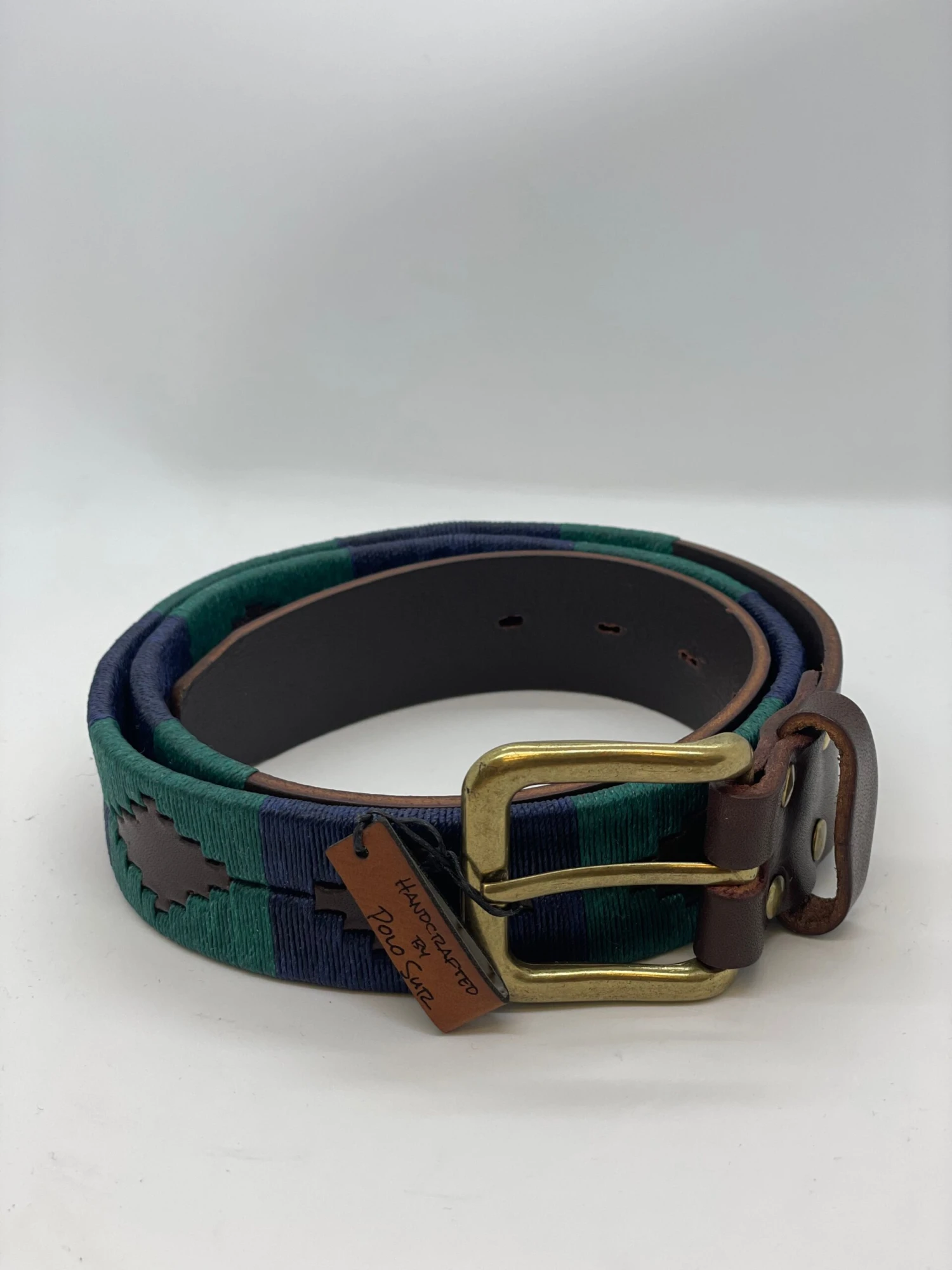 The Polo belt is made of high quality, vegetable tanned,ethically sourced leather. Each belt is hand stitched in Argentina and is offered in a variety of colors and patterns. This model is brown leather with red,blue,white,olive green stitch design.