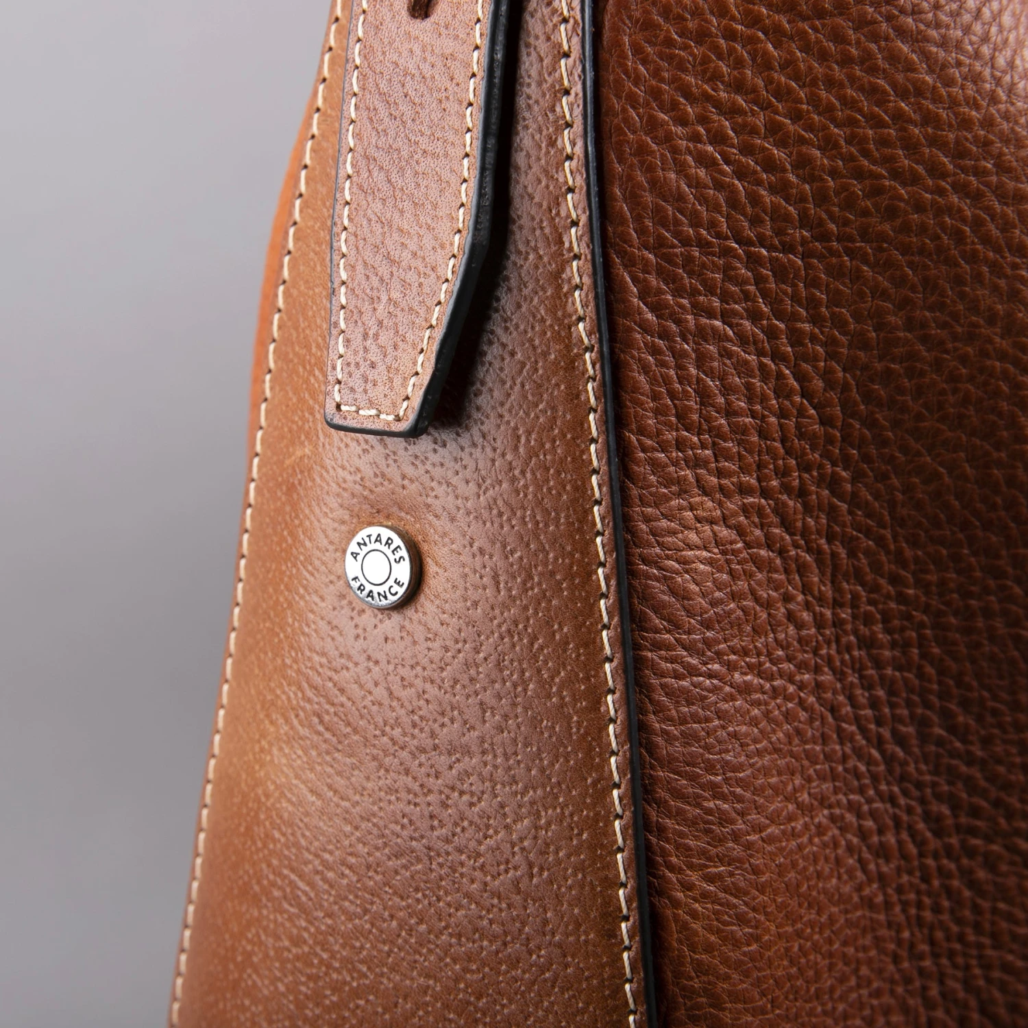 The Antarès Milano leather satchel handbag can be worn crossed or on one shoulder thanks to its large adjustable shoulder strap. This bas has a very large capacity. Interior pockets and carabiners keep contents organized. The reinforcement on the shoulder strap provides excellent shoulder comfort. Made with the leather scraps from our saddles, the Milano messenger bag is both solid and waterproof.